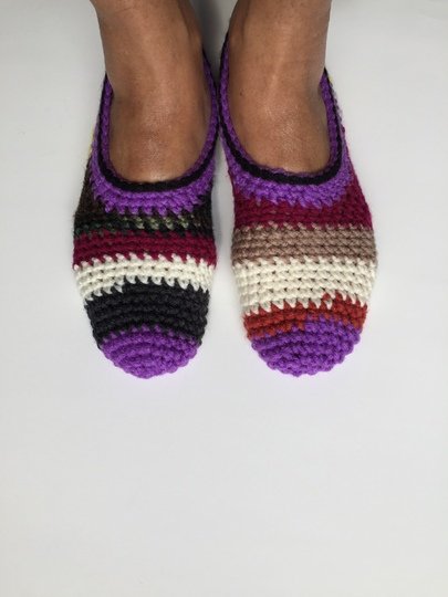 Tie all ends of leftover yarn together and roll into a ball before starting to crochet. 2x6 inch ball would be enough to make a pair of slipper.
