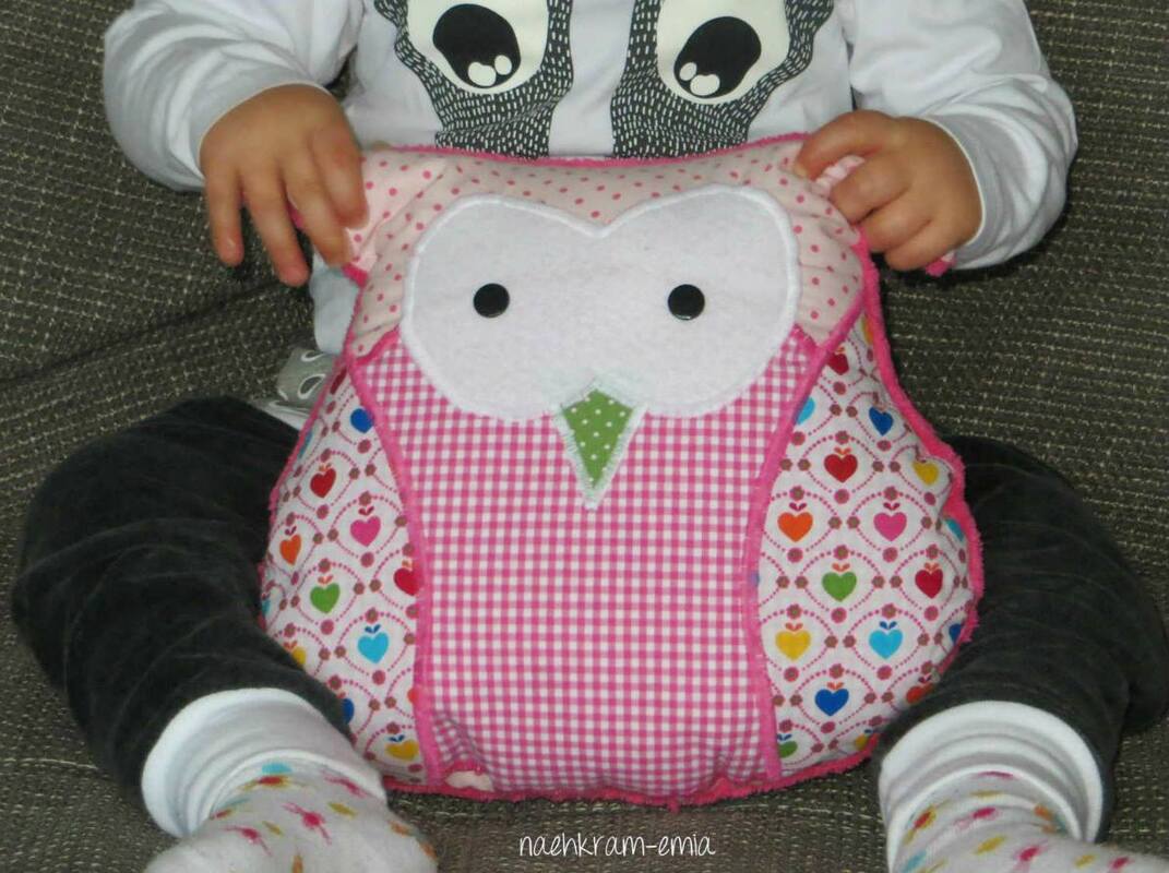 Das Eulenkissen Emma ist ein anfängergeeignetes Projekt, egal ob für den Eigenbedarf oder als Geschenk, zum Kuscheln oder einfach nur als Deko.