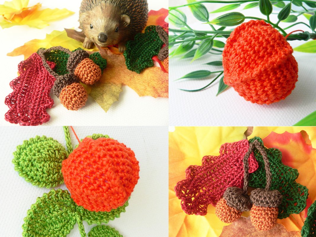 Die PDF-Häkelanleitung besteht aus bebilderter Anleitung zum Häkeln von Eicheln mit den Blättern und Physalis ohne Blätter. Damit können Sie ganz schnell Eicheln und Physalis häkeln zum dekorieren des Hauses, zum basteln oder verschenken.