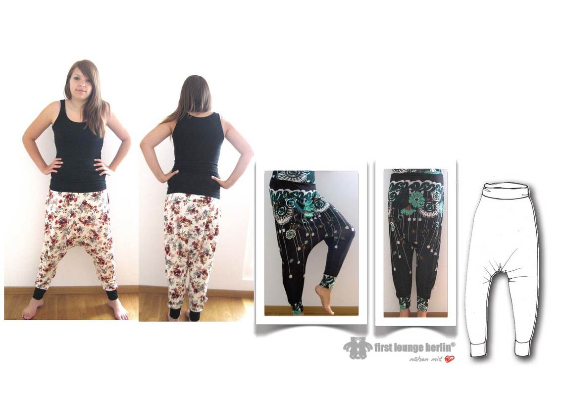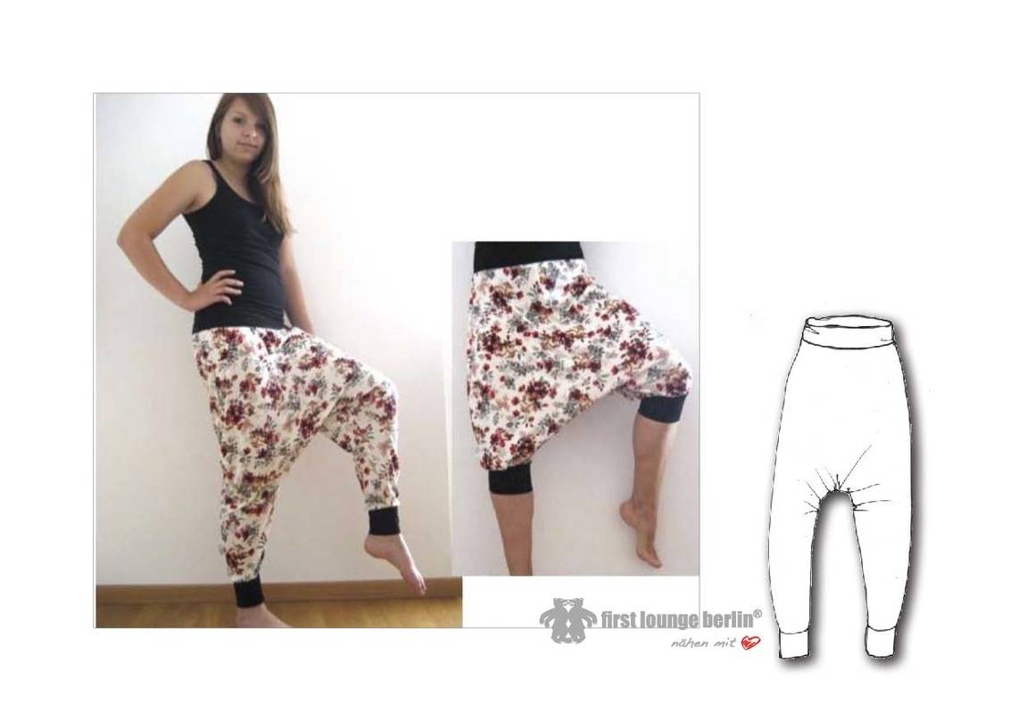 Super comfy sweatpants, hanging pants, leisure trousers, Wellness pants with cuffs. Quickly and easily sewn and always an eye catcher. Including variation possibilities for a shorter pants, knee-length pants or culottes. *