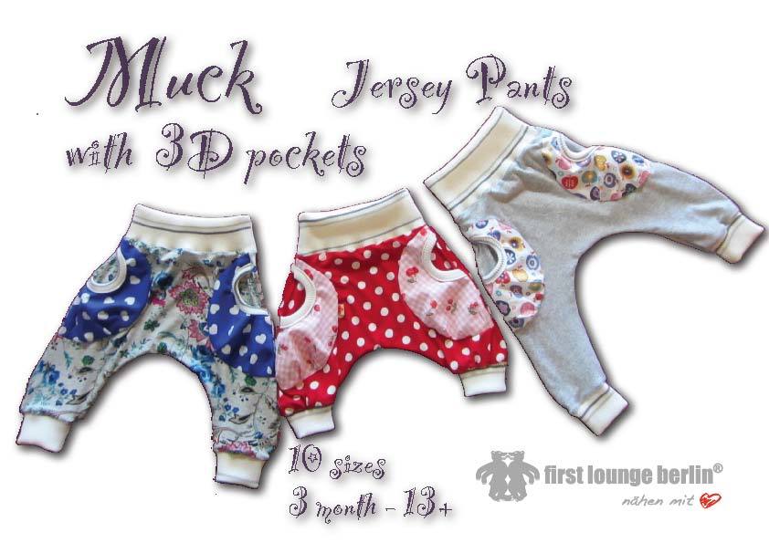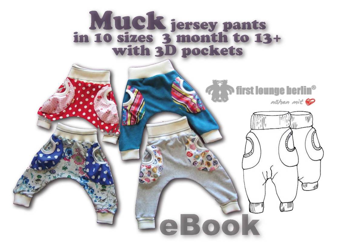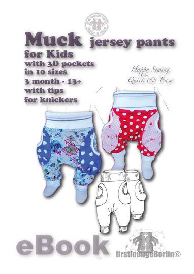 US-MUCK ♡ pants eBook sewing instruction with pattern for a kids trouser unisex with 3D-pockets for running around.