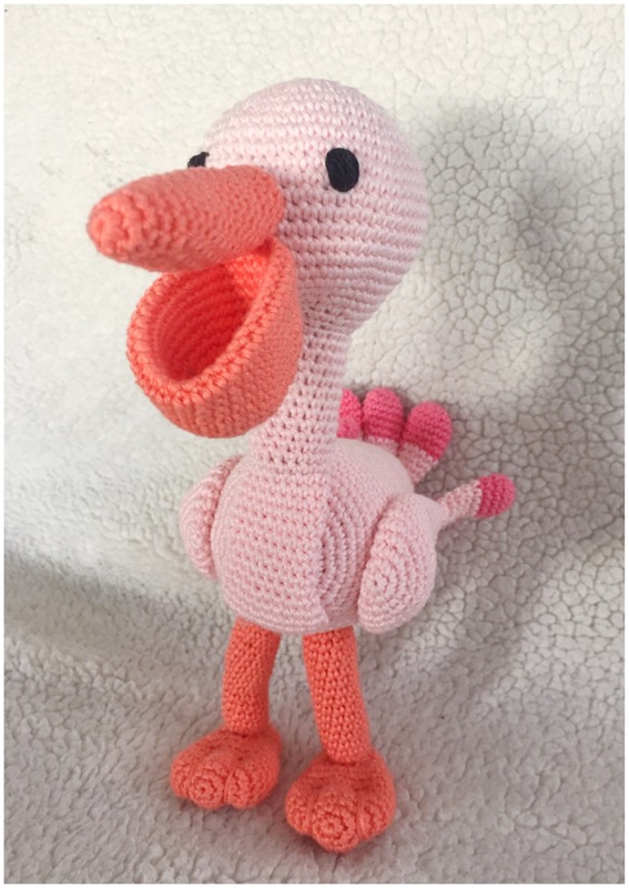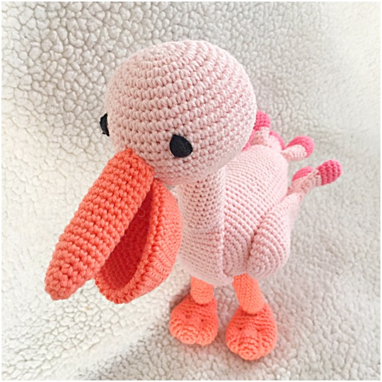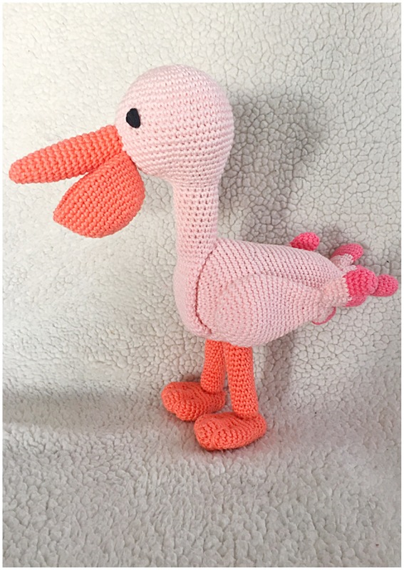 Pattern of a beautiful White Pelican in a pdf file, clear described with photos in English, Deutsch and Dutch with pictures.