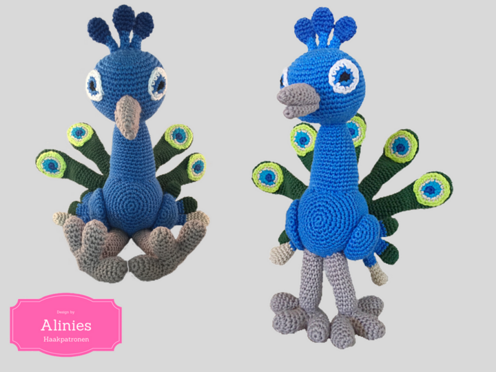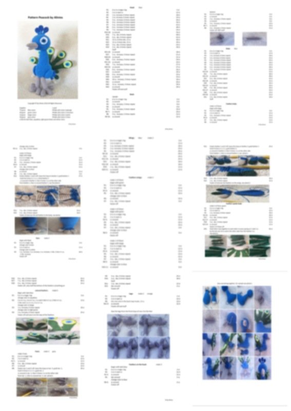 Pattern of a beautiful Peacock in a pdf file, clear described with photos in English, German and Holland's with pictures.