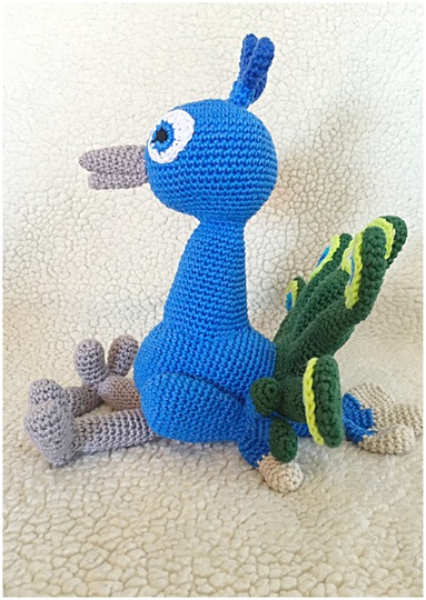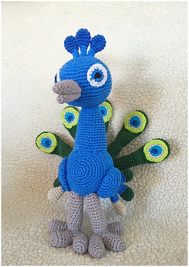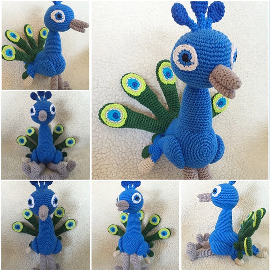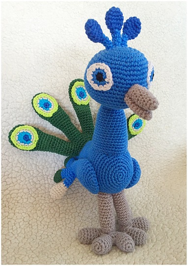 The Peacock is when it's finished and crochet with phildar cotton 3 and on needle 2.5 mm, about 26 cm long as you other yarn and needle is used, the sizes vary.