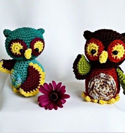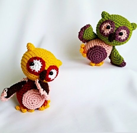 Size using the indicated yarn and crochet hook, the owls will be about 10-11 cm tall and will have a wingspan of up to 13 cm.