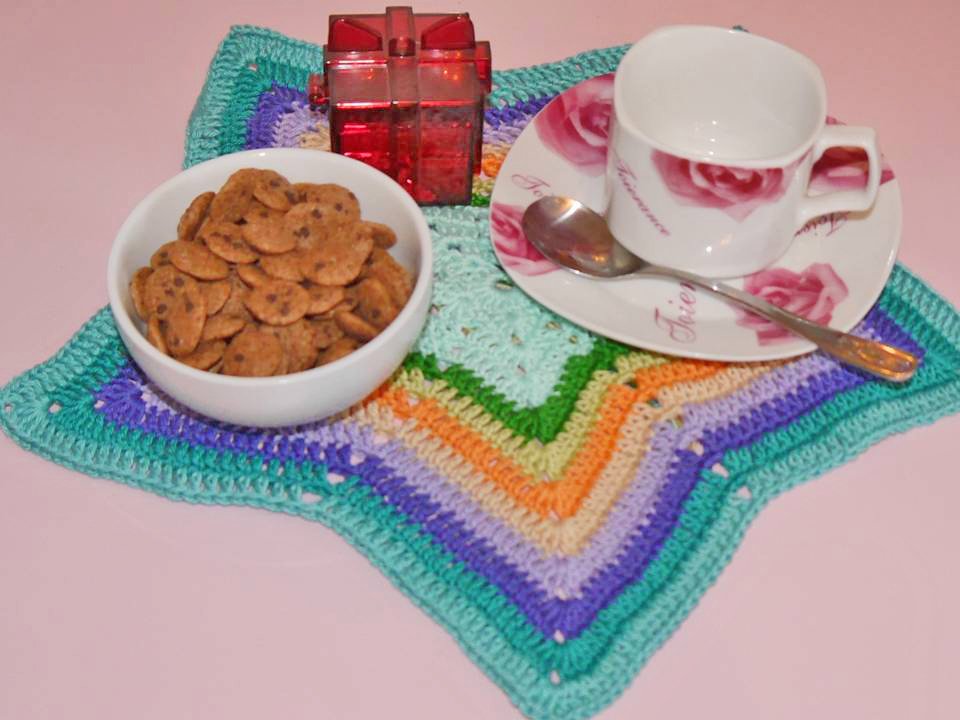 Die Tischdecke kann super aus Wollresten in beliebiger Größe gehäkelt werden und auch Häkelanfänger werden ihren Spaß haben.