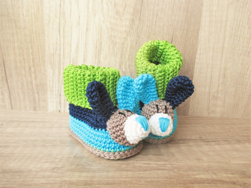 Sie sind nicht nur weich und kuschelig, sondern passen mit dem süßen Hasenkopf auch prima zum Kuscheltuch Hase und natürlich zum Schmusehasen Tom ♥ Durch das Rippenbündchen sitzen die Schühchen schön fest, drücken aber nicht (und Schnürbänder können auch nicht herausgezogen werden).