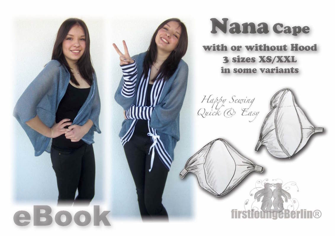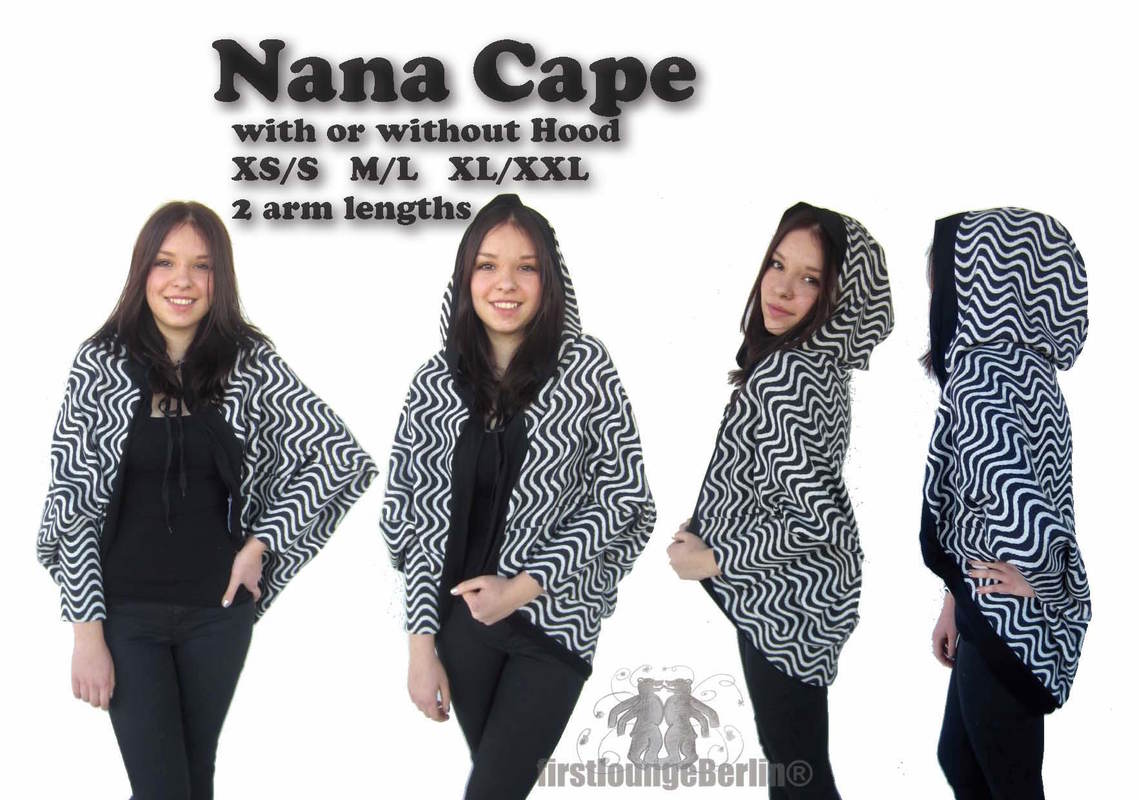 Nana Cape, eBook/PDF-file poncho or little jacket with or without hood in 3 sizes.