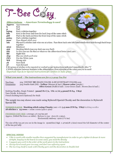 As with all my T Bee Cosy patterns, as a gift to you, included in your instant downloadable .pdf pattern is a print-to-cut out & make matching envelop, to store your pattern