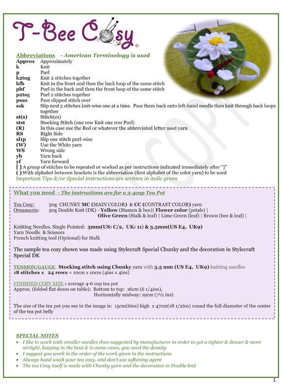 The tea cozy is made in Chunky and the rest in Double Knit (DK)