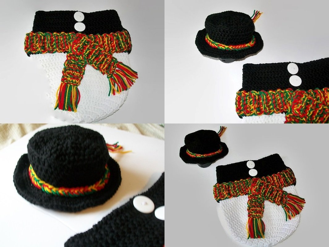 What a perfect little project for a Christmas baby. Snugly and warm. Made with soft yarn, easy to read pattern. Works up super fast. Bring baby home in this little snowman cocoon with the top hat. Makes for a great baby shower gift, also a great seller at craft fairs. Perfect little outfit for the chillier months. Size Newborn.