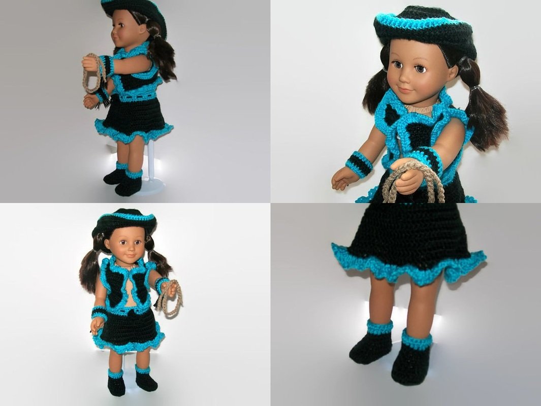 This little set is adorable to make and to see the finished product. Decorate it up if you would like, change the color scheme up. So easy and quick to make. The pattern has complete instructions for the skirt, booties, hat, lasso, and vest. Fun and quick patterns to do up for any special day.