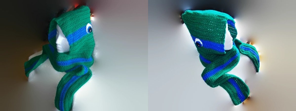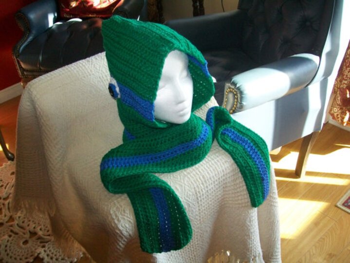 Teen/Adult size Crochet pattern for an attached hood scarf Make all your 4 favourite characters. Eyes on both sides of the head means your able to see all around you. Great gift for those boys who still relish in their favourite heros from the past. Makes up very quick and easy.