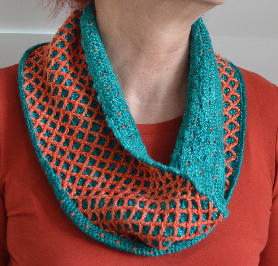 Crochet this reversible Diamond / Polka Dot cowl neck warmer, which can also be easily adapted to a scarf