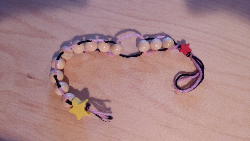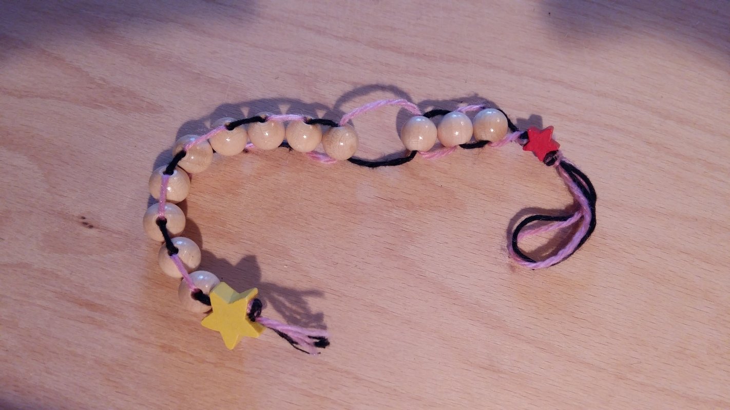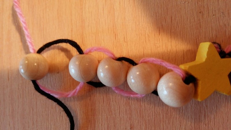 Eine Kette aus Holzkugeln , die beweglich sind , aber nicht wieder an den alten Platz zurückrutschen . Dies ist durch eine einfache Technik möglich , die in dieser Beschreibung einfach , Schritt für Schritt und mit Bildern erklärt wird .