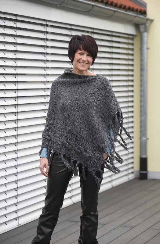 Der Poncho kann mit und ohne Fransen getragen werden.