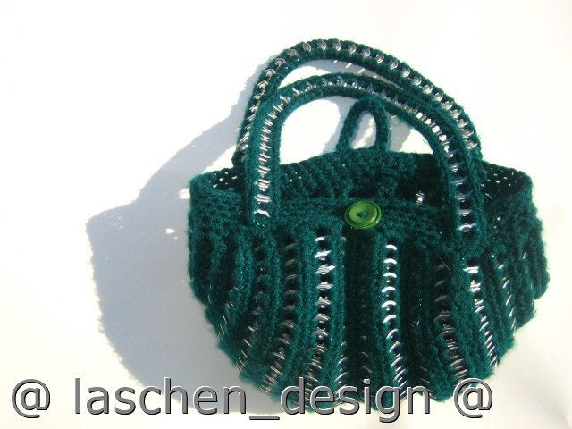 Das ist eine Häkelanleitung für eine Handtasche aus Dosenlaschen.