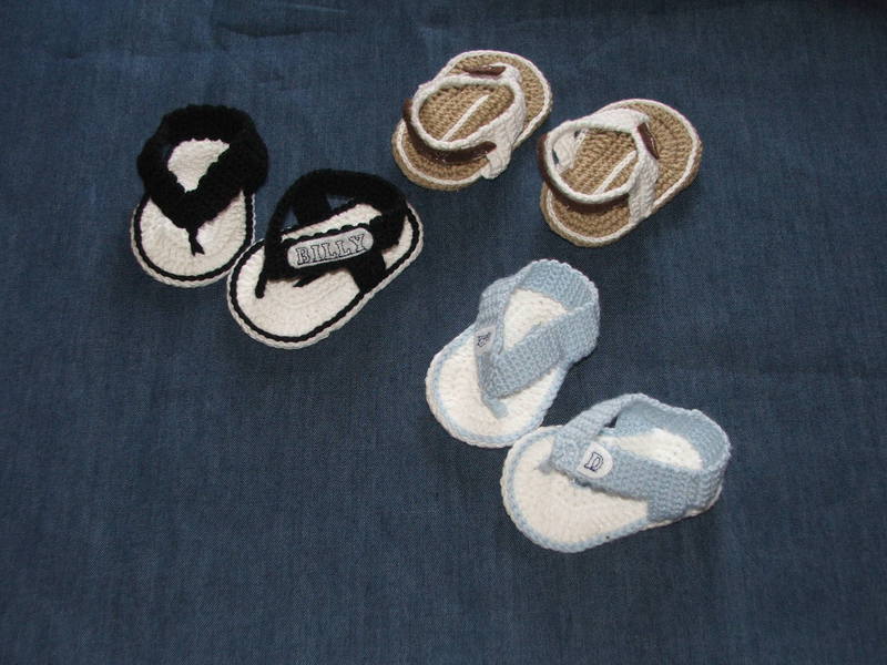 Zauberhafte Babysandalen für die warmen Tage. Da kann gemütlich mit den Zehen gewackelt werden :) Für kleine Mädels geschmückt mit Blumen, Jungs bevorzugen die bunten Fische :)
