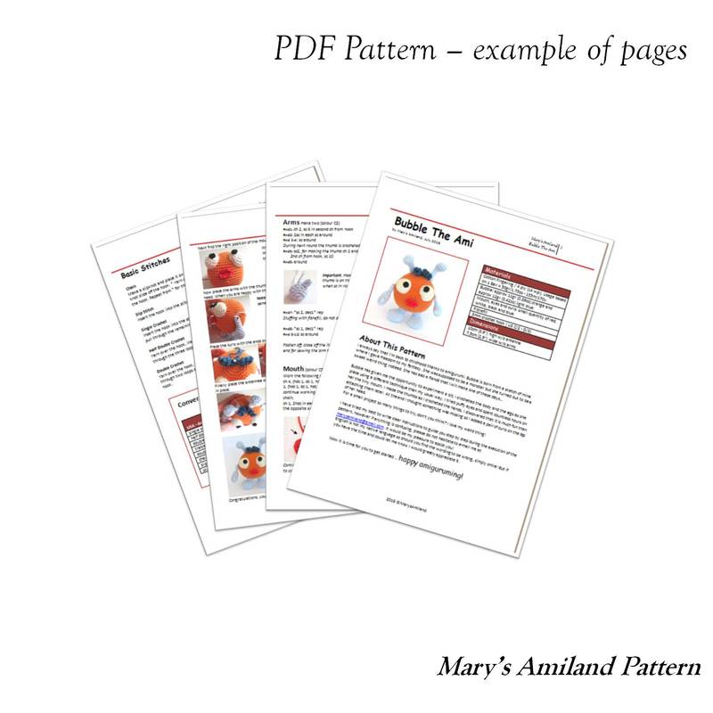 Finished Size: if done with cotton fingering-weight yarn (4 ply) in the selected colours for all items, 3mm hook, it is 10cm (3.9”) tall w/o antenna. This may vary depending on the yarn and hook size you decide to use.