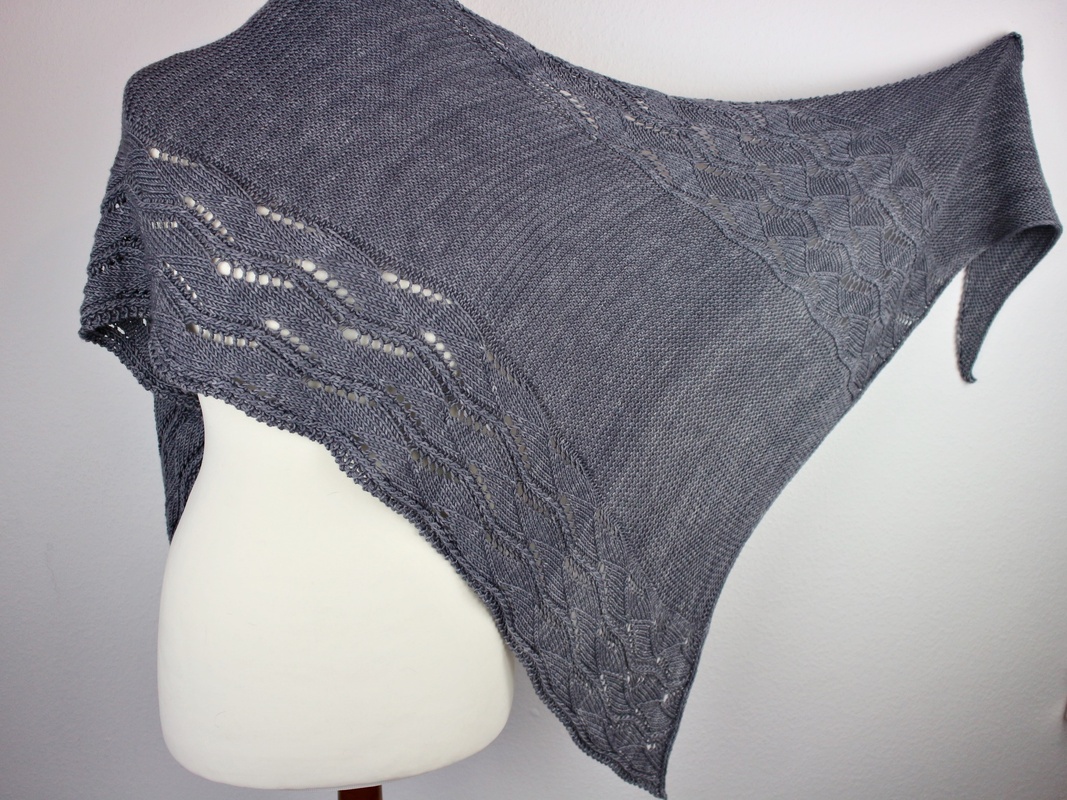 The shawl is worked in one piece from a small starting point. Pattern sections repeat and expand as the shawl grows. One of the key features of this design is its flexibility: the size can easily be adjusted to the amount of yarn available. If you have yarn left at the end, simply work another pattern repeat.