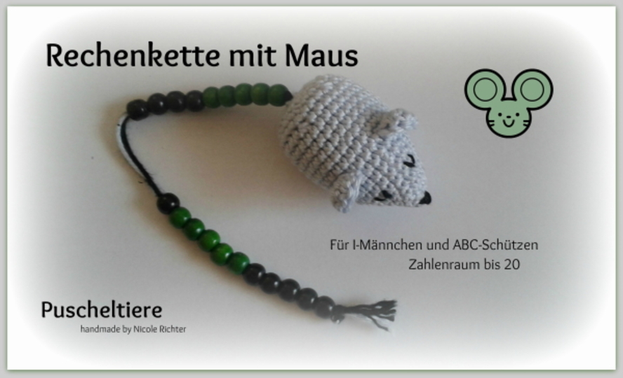 © Diese Anleitung ist urheberrechtlich geschützt! Die Urheberrechte liegen bei Nicole Richter von Puscheltiere. Das Tauschen, Verkaufen und Veröffentlichen der Anleitung sowie das Übersetzen in andere Sprachen ist nicht gestattet. Der Verkauf der fertigen Figuren, die nach dieser Anleitung entstanden sind, ist erlaubt. Bitte dabei immer angeben: Hergestellt nach der Anleitung „Rechenkette Maus“ von Puscheltiere.