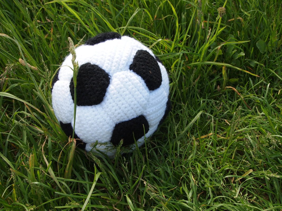 Eine Häkelanleitung für einen Fußball gefüllt mit Füllwatte. Ideal zum spielen im Kinderzimmer ohne Schaden anzurichten.