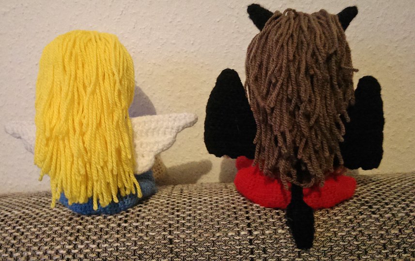 In dieser Anleitung wird Schritt für Schritt erklärt, wie das Engelchen und das Teufelchen gehäkelt werden.