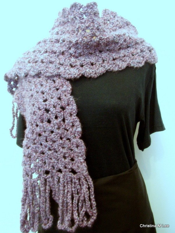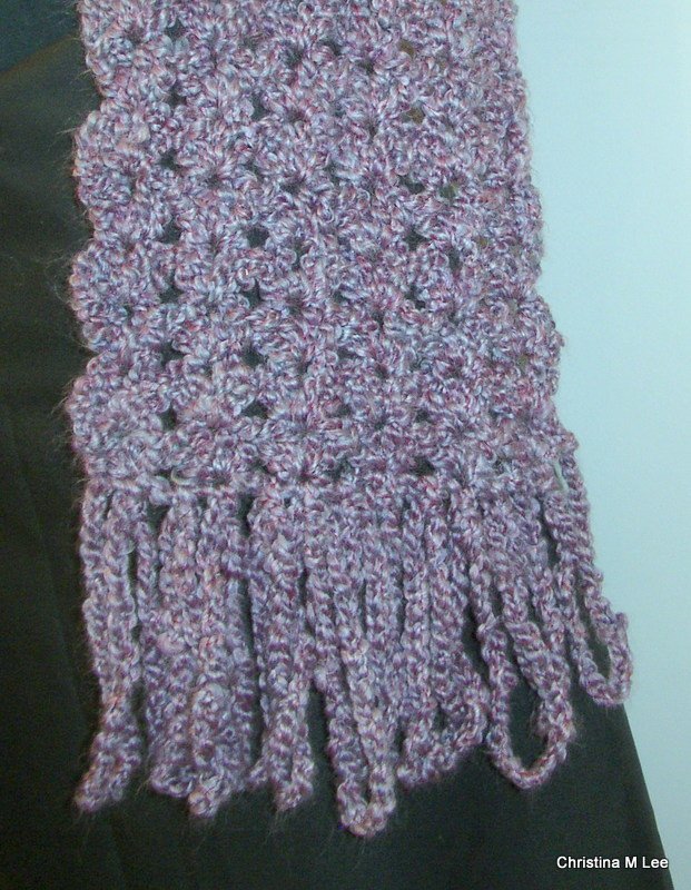 This is an Original Design Pattern by Christina M. Lee. Copyright Christina M Lee Designs and Christina M Lee, November 1, 2010. Please feel free to use my pattern to make as many scarves as you desire, give them away, sell them freely.