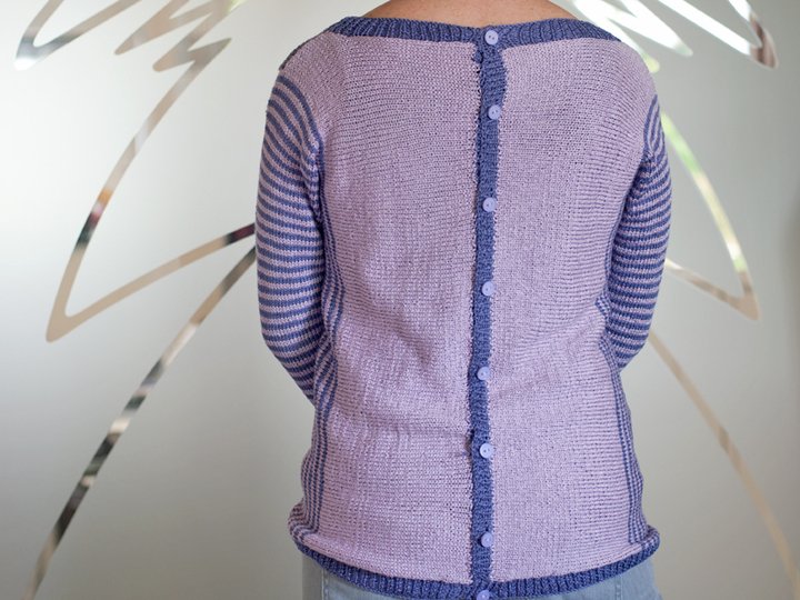 A very easy to knit sweater even for beginners. The button band on the back is just a “fake”. So you don’t need to work buttonholes.