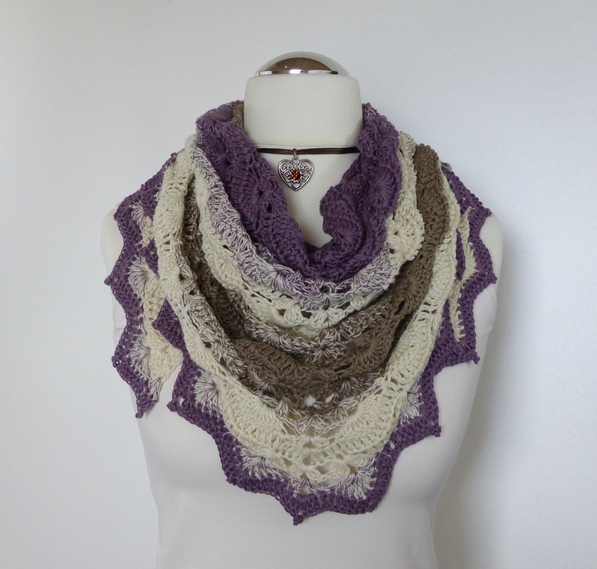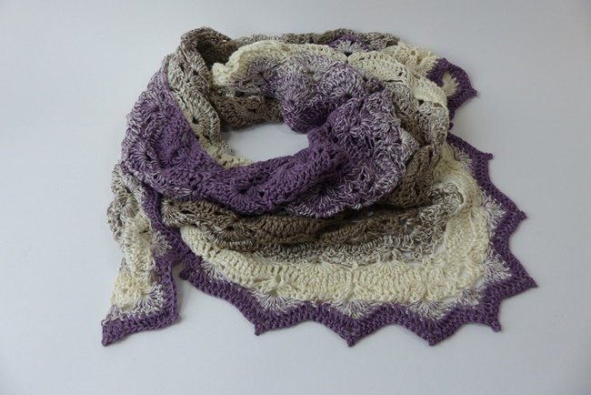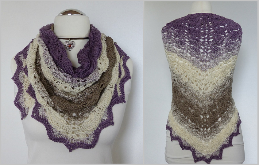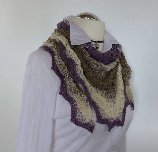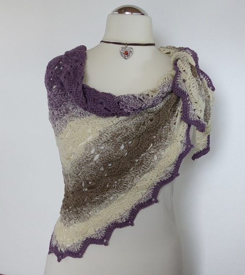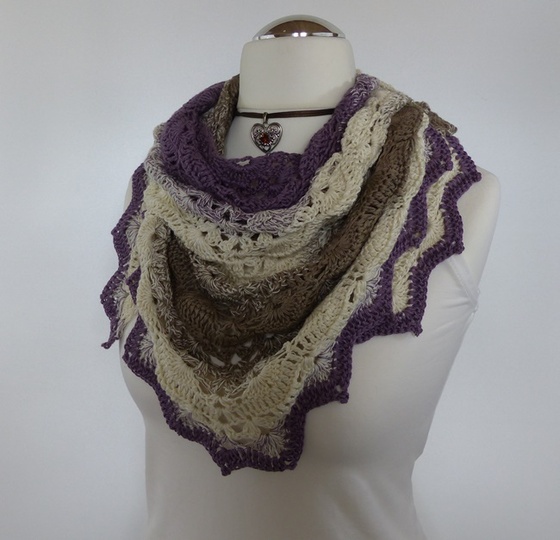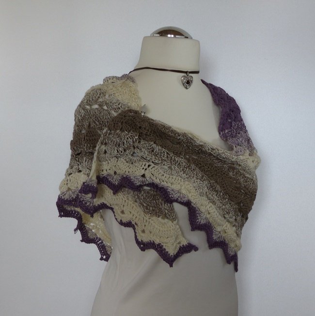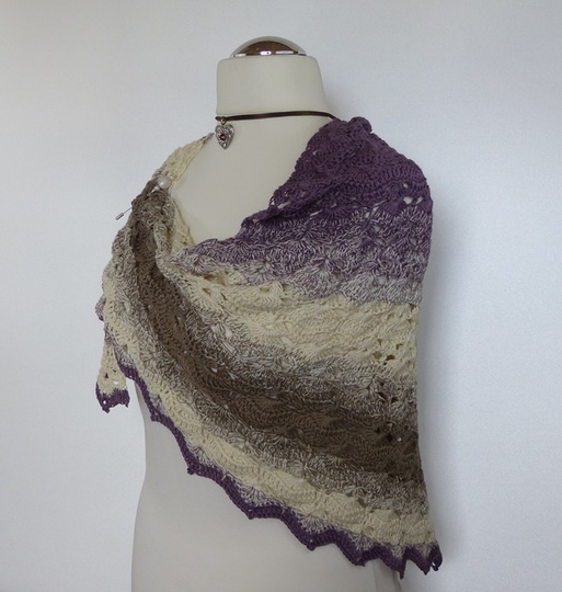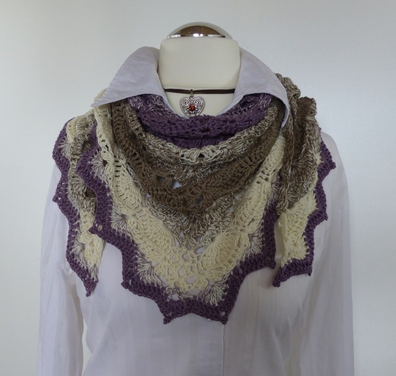 "Mara" ist ein schönes Dreiecktuch, das leicht zu häkeln geht. Das Muschelmuster ist sehr einfach gehalten, prägt sich schon nach kurzer Zeit ein und sieht sehr elegant aus. Die Abschlusszacken geben den Tuch einen edlen Touch.