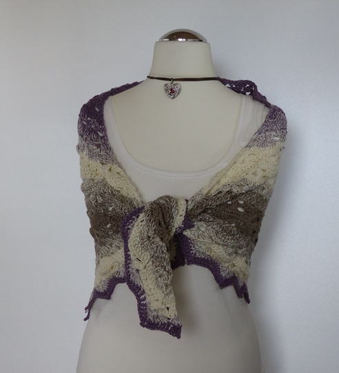 Das Tuch kann mit fasst jedem dünnen Garn gehäkelt werden. Mit einem Sommergarn ist es eine leichte Sommerstola. Mit einem Merinogarn der ideale Begleiter für den Winter.