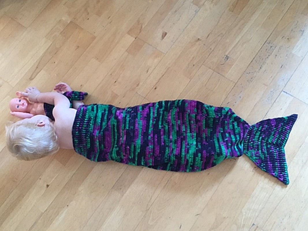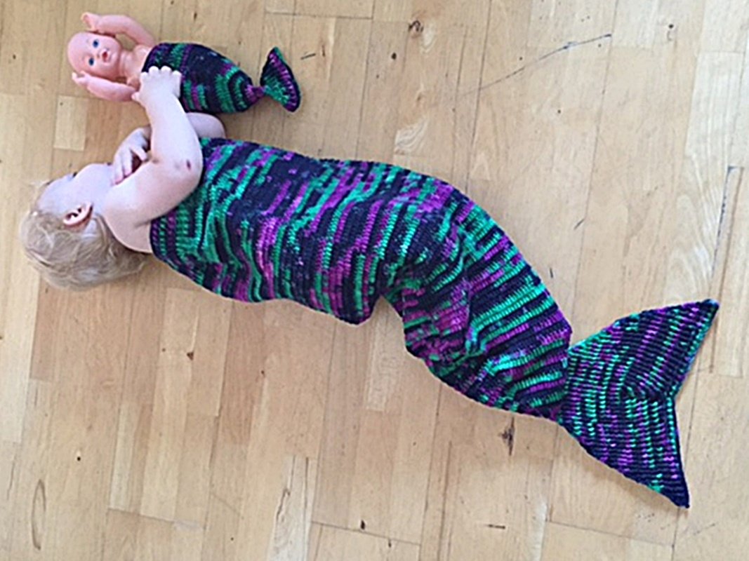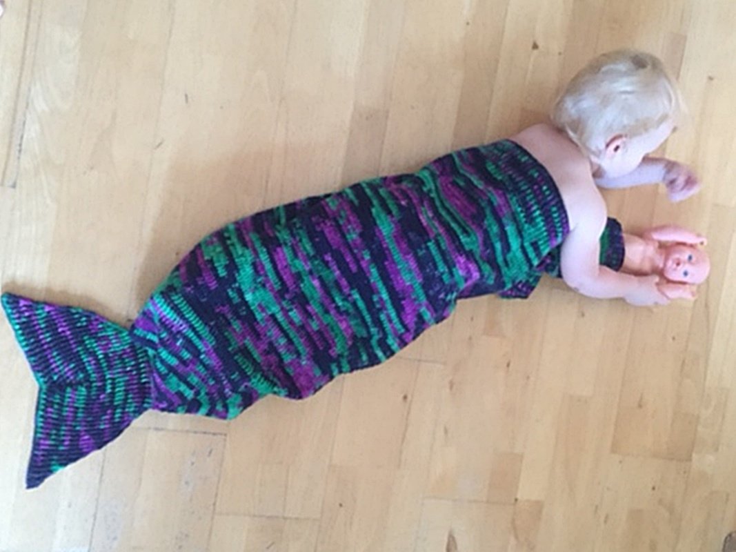 Natürlich freut sich auch eine größere Nixe sehr über eine solche Decke, oder auch ein Meerjungmann...