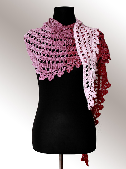 The shawl's length and width are variable, and it can be worked in many yarn weights.