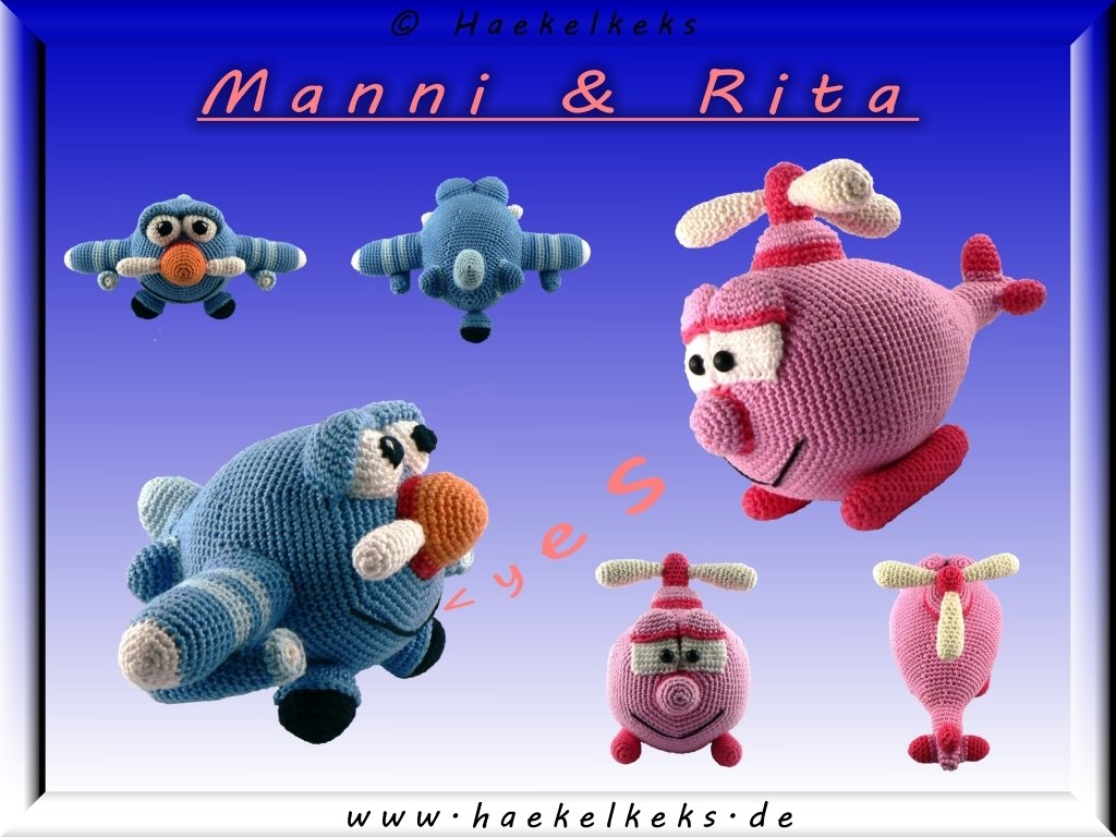 Wir verkaufen hier die passenden, leicht verständlichen und bebilderten Häkelanleitungen zu Flugzeug Manni und Hubschrauber Rita.