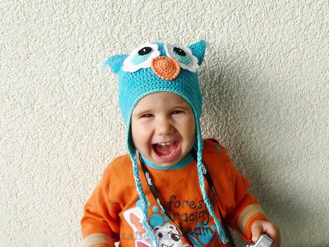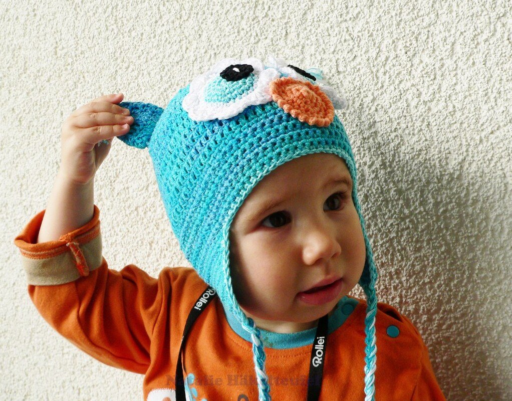 Diese PDF-Häkelanleitung besteht aus bebilderter Anleitung zum Häkeln einer Mütze in der Form einer Eule mit den Ohrenklappen. Die Mütze kann sowohl für Kinder als auch für Erwachsene gehäkelt werden. Die Größe wird während des Häkelns des Bodens der Mütze angepasst (wird in der Anleitung erklärt).