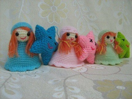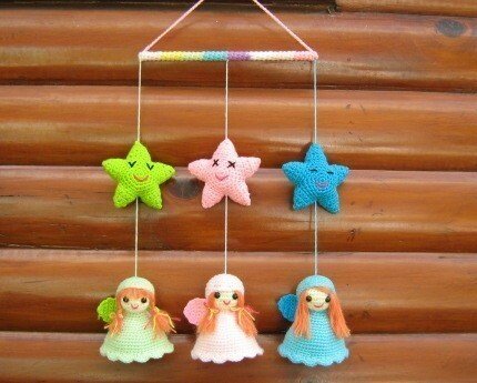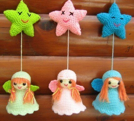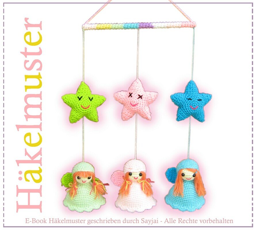 This pattern is written in English using US crochet terms. A separate German translation is included. The pattern is 6 pages long with very detailed instructions and 20 images to help you make the Little Angels Mobile.