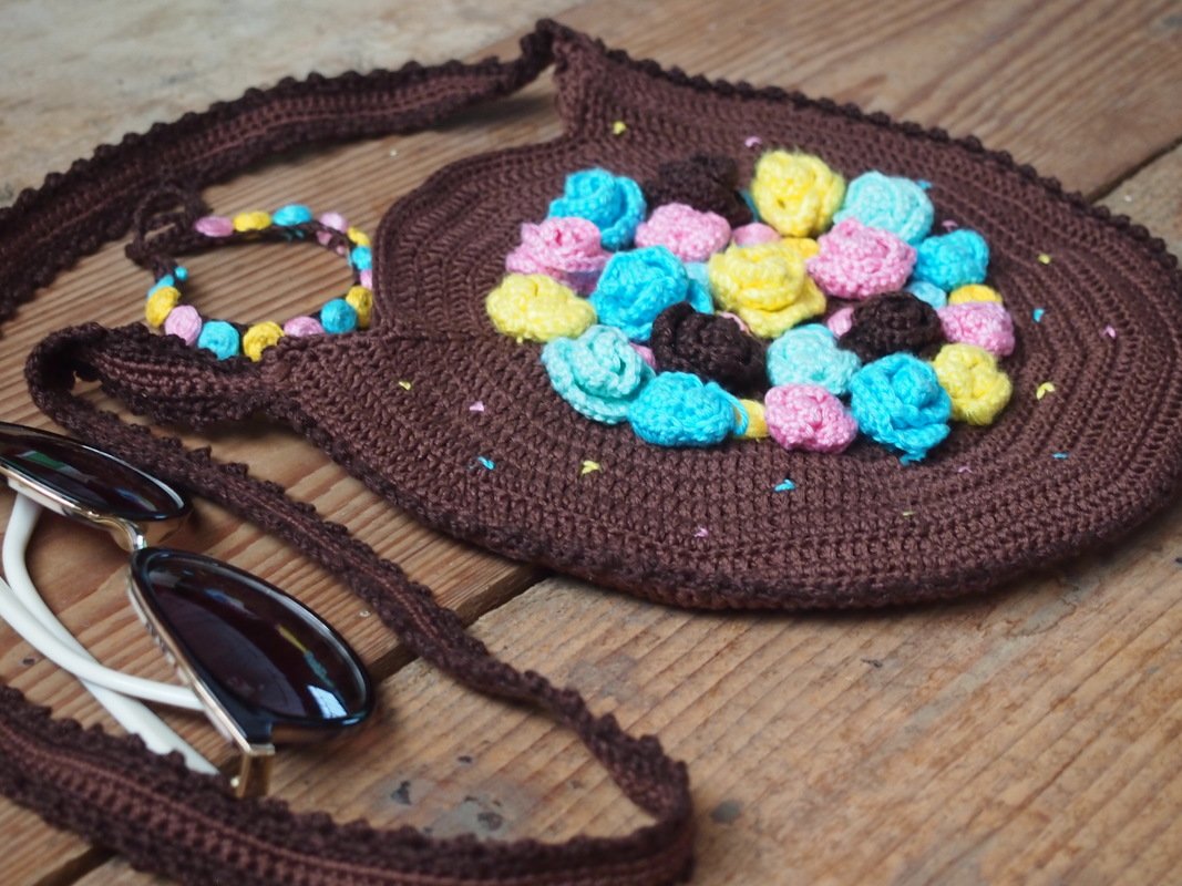 Flower Bag and Bracelet Crochet Pattern with embroidery