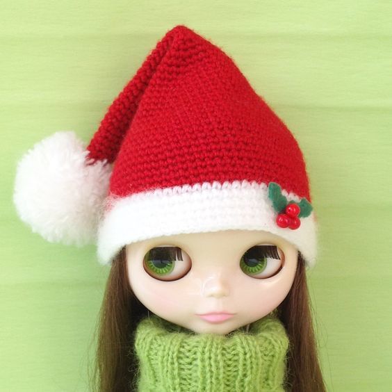 Santa's Hat for Blythe Doll, Pullip, Blythe Pattern, Crochet Pattern, Blythe Hat Pattern, Christmas Hat Pattern, Hats Doll, Instant Download