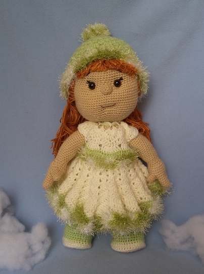 Die PDF beinhaltet die Anleitung für die Puppe, das Kleid, die Stiefel, das Unterhöschen, die Jacke, sowie für die Mütze und die Handschuh.