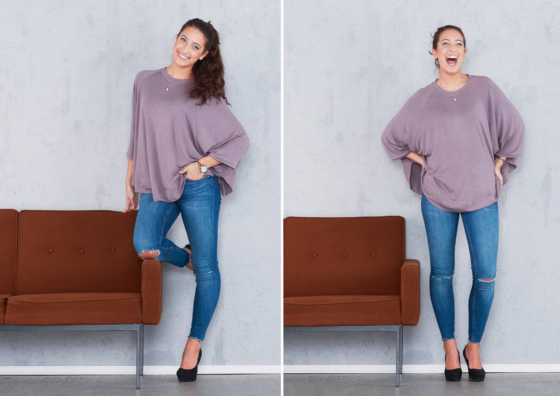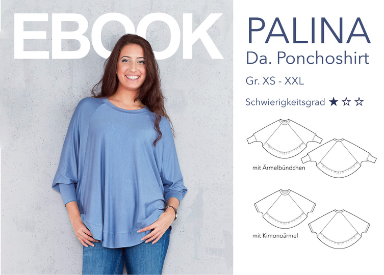 Die Palina ist ein bequemes, legeres Modell mit Raglanärmeln und rundem Halsausschnitt. Die Raglanärmel reichen bis zum Saum. Der angesetzte Saum wird beim Vernähen eingekräuselt.