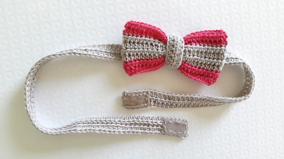 This cute and neat bow headband was made for a one-year-old girl but you can adjust the strap length and make it for a newborn or bigger girl. Bow itself can be used as a boy tie for a boy or even pets.