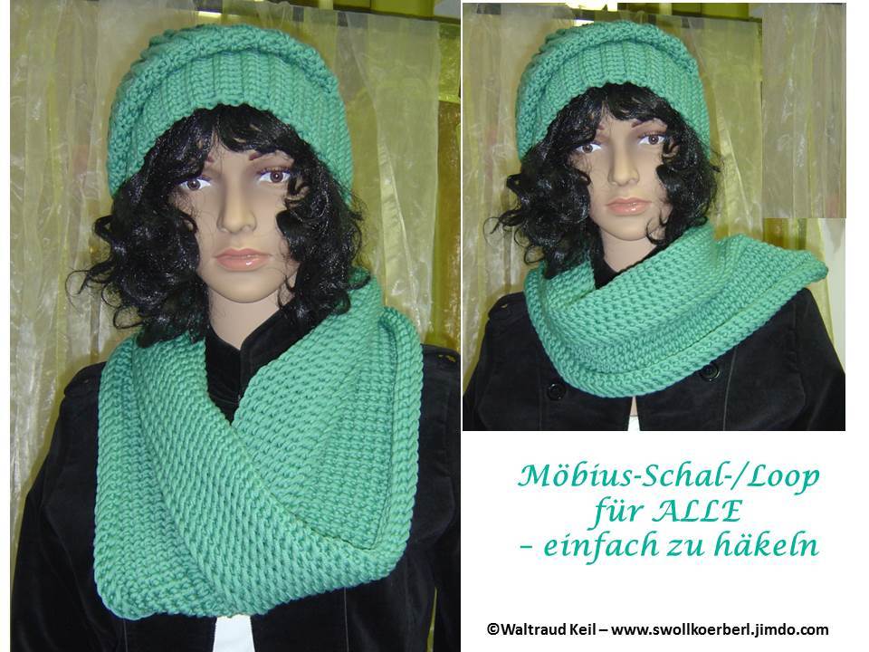 Ein wunderbar leicht und schnell zu häkelnder Schal/Loop auch als Schulterwärmer oder Mützenschal tragbar - in Möbius-Technik gehäkelt. Die Möbius-Technik beim Häkeln ist wirklich sehr einfach (bebildert). Es wird von der horizontalen Mitte aus gehäkelt, dies ergibt raffinierte Muster-Effekte.