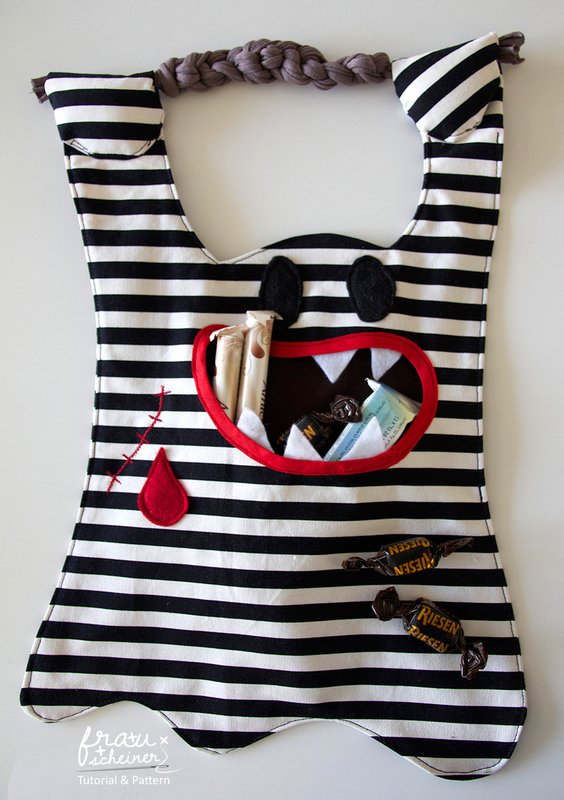 Halloween is just around the corner! The kids can‘t wait put on their scary costumes and go trick-or-treating! With this handmade Trick-or-Treat-Bag you will not only make your kid super happy but also challenge your neighbors. ‚Trick-or-Treat‘! Who dares to feed this scary fella?