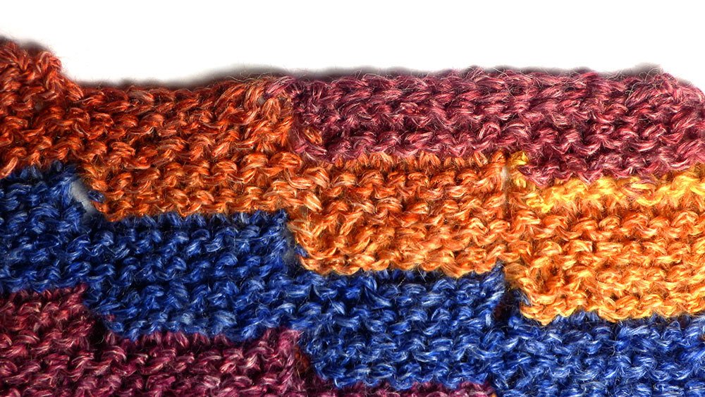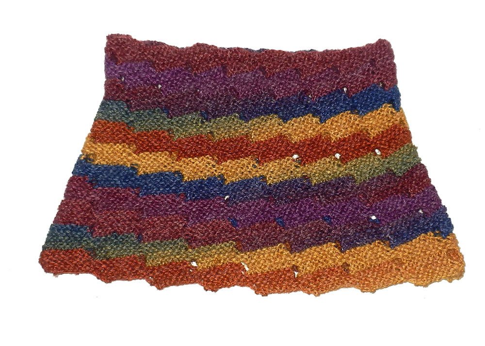 Schön finde ich Entrelac, mag aber nicht immer wieder Maschen aufnehmen. Zum Schluss entschied ich mich für an dieses einfachen Treppenmuster. Es ist super einfach zu stricken und absolut Anfänger tauglich.