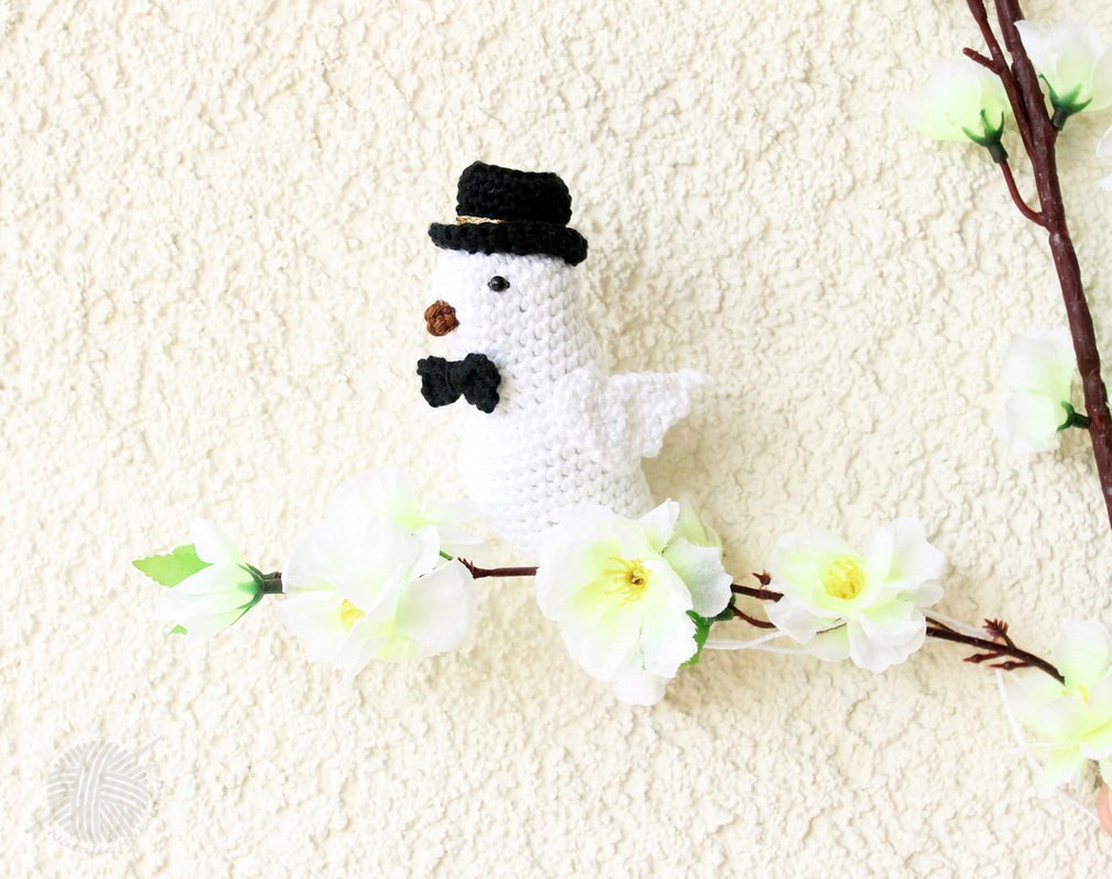 The PDF crochet tutorial consists of illustrated tutorial to crochet a bird. With it you can crochet a bird in different colors to decorate the house or give as a gift. With this crochet pattern you can also crochet wedding doves (with hat and bow tie for groom or with beads for bride).
