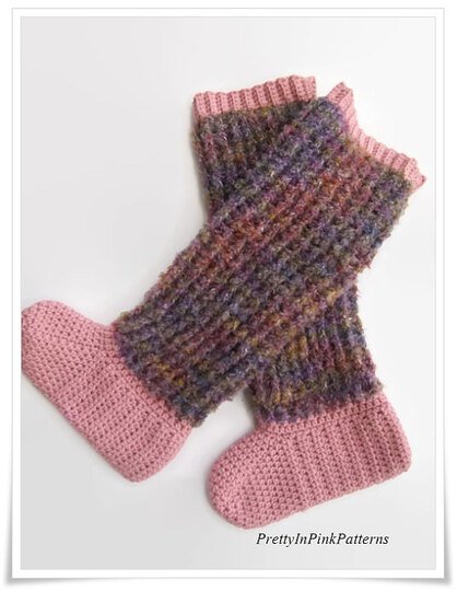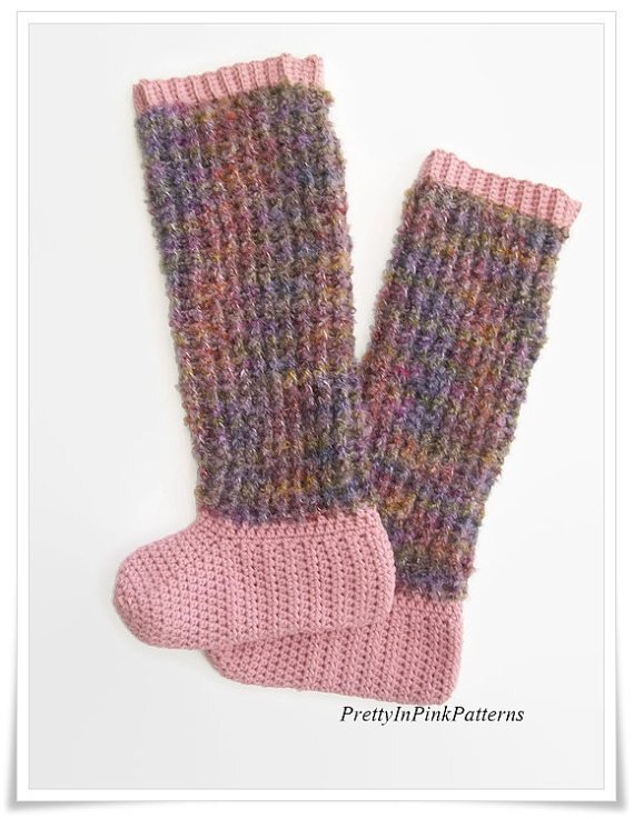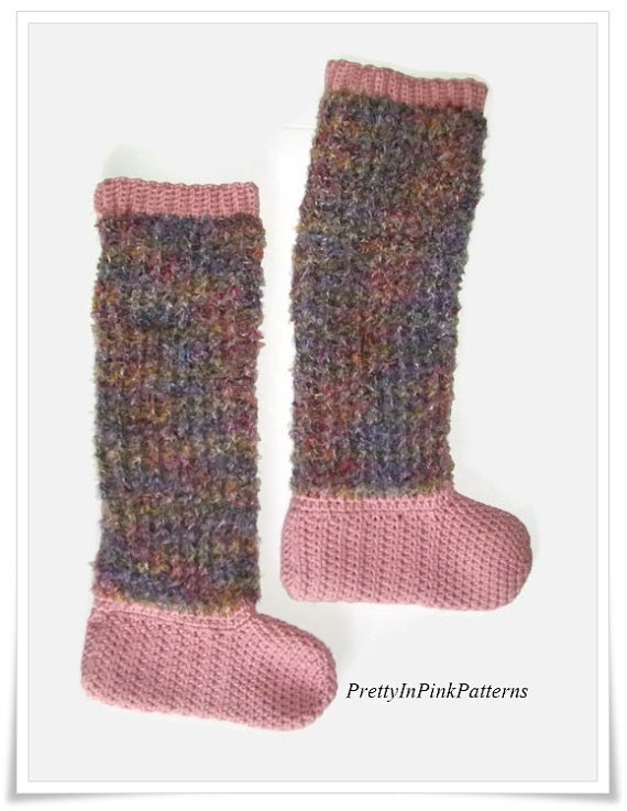 Perfect pattern for the girl who has everything. This slipper sock pattern is super quick and easy. Make them in every color. Share them as a Christmas, birthday or any time of year gifts. These socks come up over the knee for that more fashionable look. My daughter uses hers for when she is travelling while driving. They are super warm, and you can dress these up or down. Add flowers, drawstrings, too many options to mention.