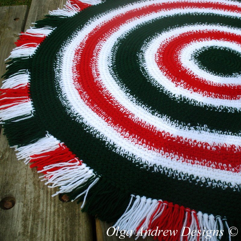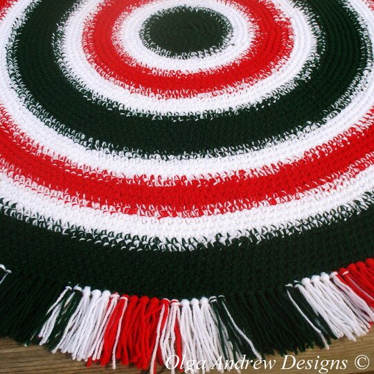 Round Christmas rug with fringe. Easy crochet tutorial pattern instant download -- Olga Andrew Designs Pattern 058.