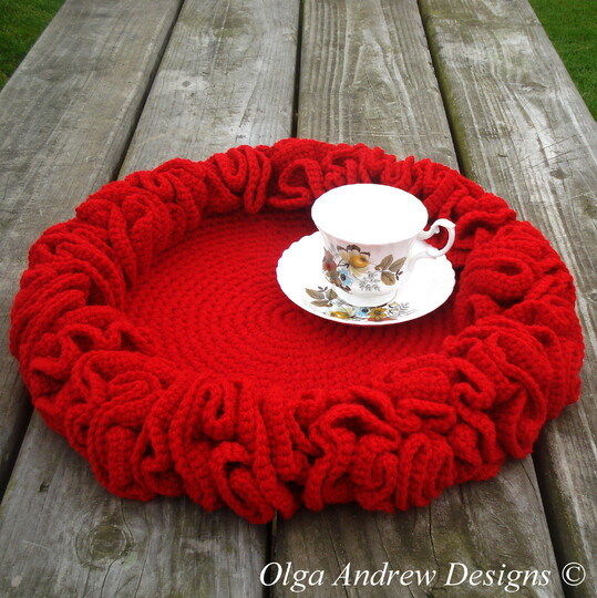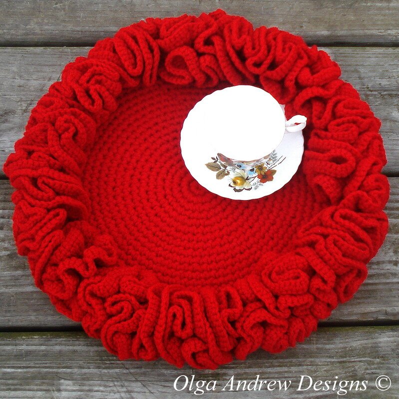 This is a step-by-step tutorial pattern for a hand crocheted large Christmas ruffle doily, which can be used also as a tea-cloth, coaster, place mat or hot bowl (plate) holder, table decoration. Excellent gift for Christmas and for any occasion.
