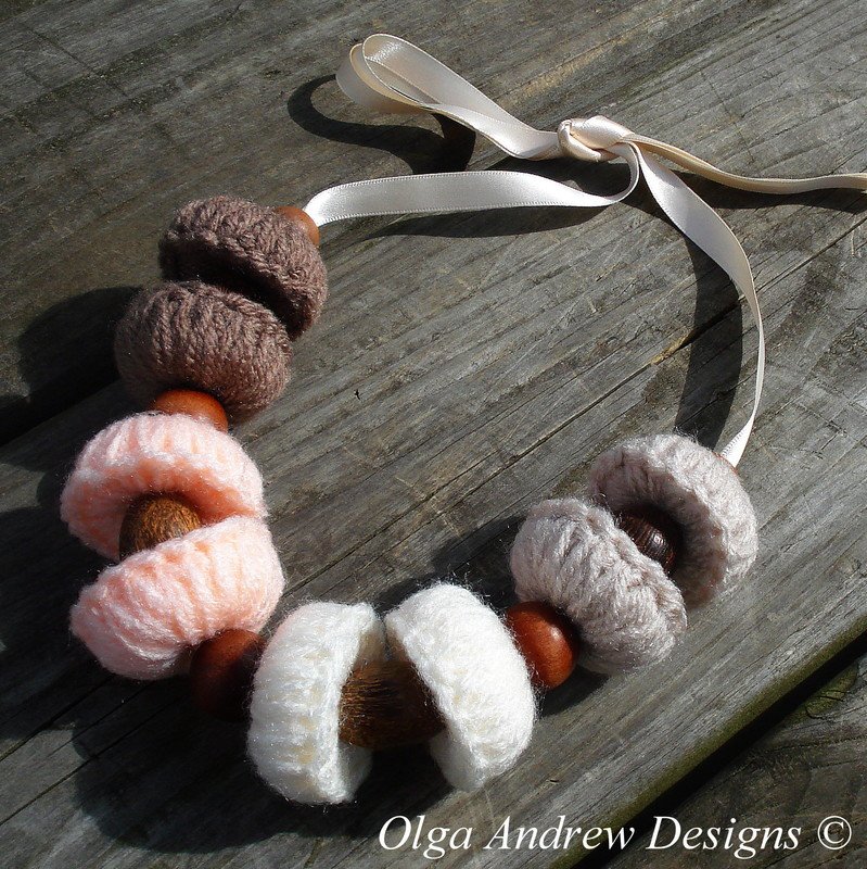 Large beads and beaded boho necklace. Easy crochet tutorial pattern instant download -- Olga Andrew Designs Pattern 066.
