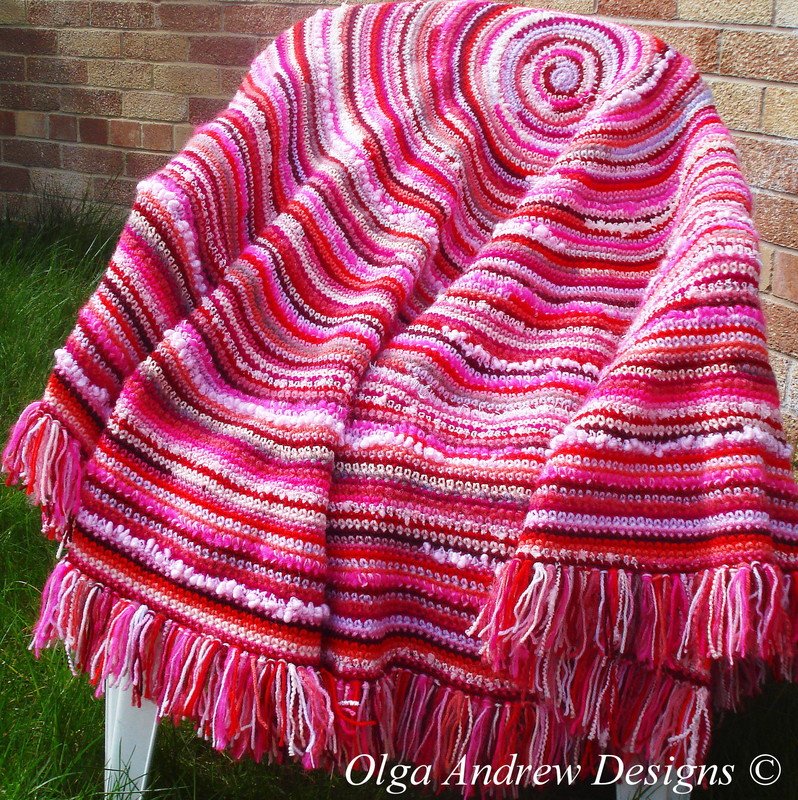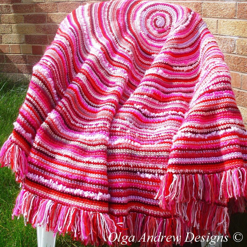 Boho round shawl (wrap, blanket) with fringe. Easy crochet tutorial pattern instant download -- Olga Andrew Designs Pattern 045.